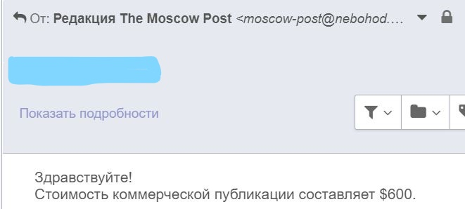 Публикация в «сливной помойке» сейчас стоит дешевле — все-таки они проигрывают Telegram по аудитории и популярности. Например, The Moscow Post была готова поставить компромат на директора структуры «Газпрома» за 600 долларов. Плюс 150 за работу журналиста.